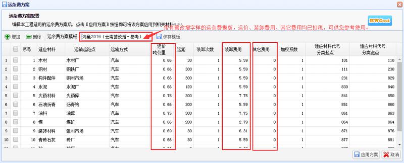 4、运杂费方案中吨公里运价、装卸费用、其他费用均需除税,请注意检查